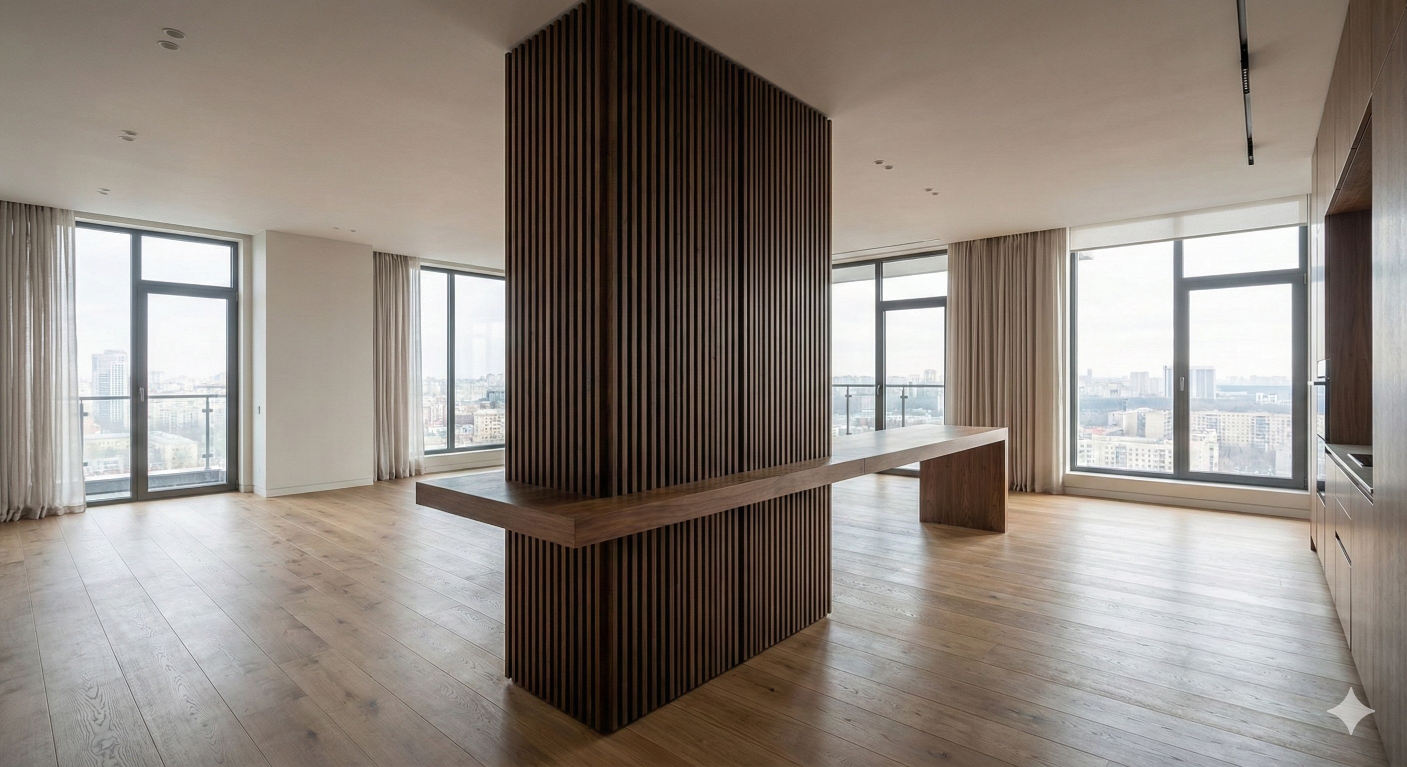 材質的消融感: 透過特殊塗料的肌理延展,或是與鄰近牆面材質的咬合,讓柱體與天花、地板的邊界模糊化。當視覺不再停留在「這是一根柱子」時,虛化就達到了目的。